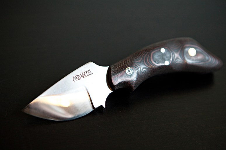 Black and red linen micarta on a 1/4 inch 5160 blade.fits perfectly in your hand for a skinning knife.