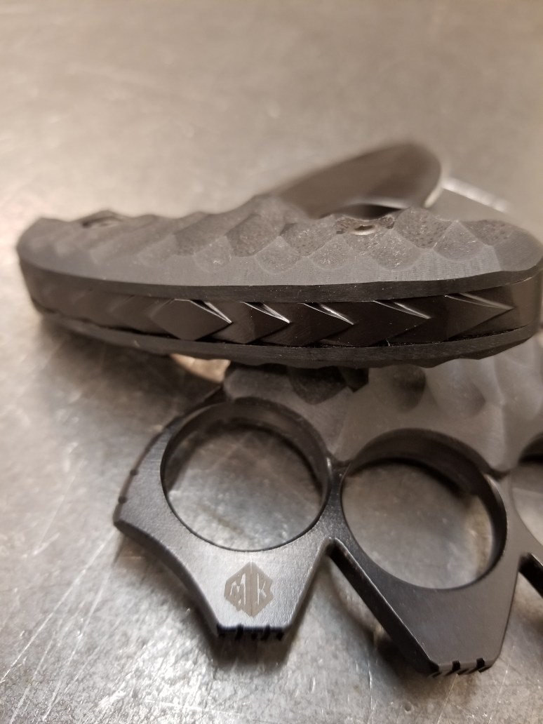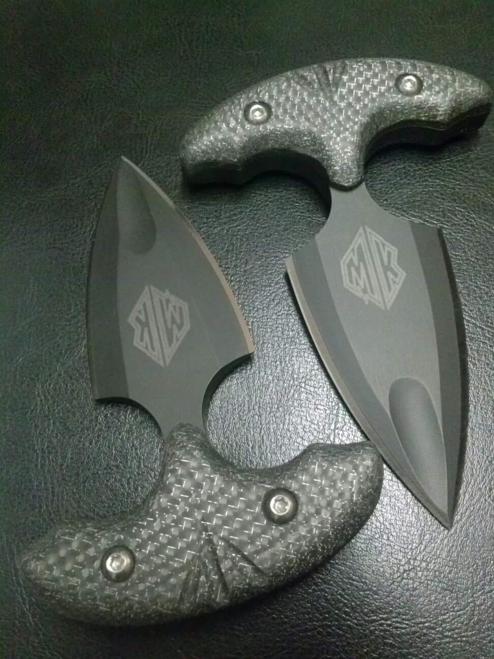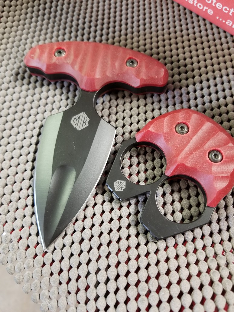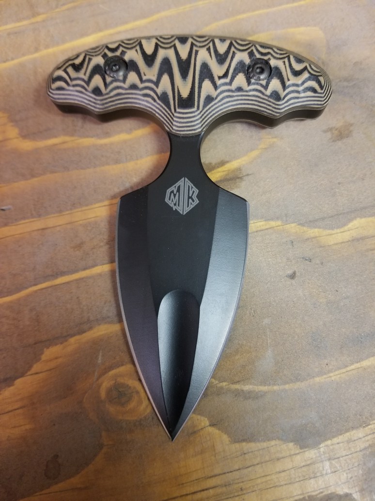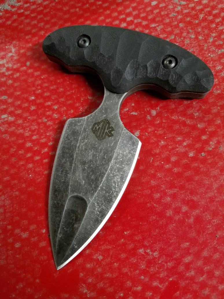 Made of .25″ thick 80crV2 steel with a cerakote finish . It comes with any color g10 handles, and includes the kydex sheath for $250. plus shipping. Handle and steel upgrades are available. Contact for ordering.