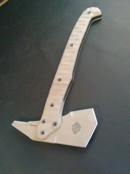 22″ of black 5160 steel with a 16″ compound grind. Carbon fiber, and c tek matrix handle